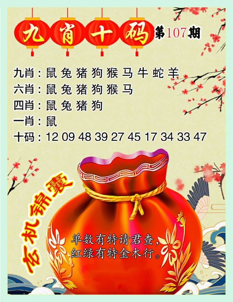 | 106期:单双两肖 【双数+龙马】开:鸡22准 |